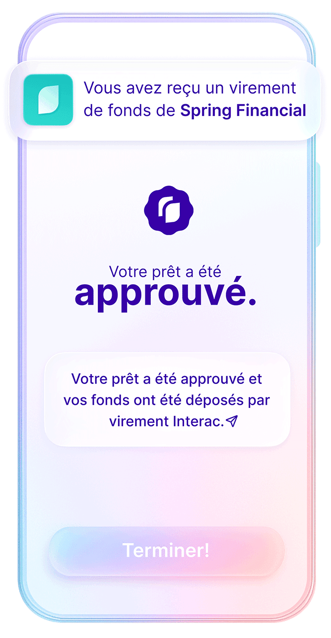 Une fois approuvé, nous transférerons les fonds directement dans votre compte par virement Interac.